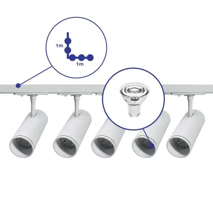| Fabrikantnaam | Complete L shaped 1-Phase Track Set White incl. 5x Spot fixture + GU10 2700K 3W Dim – 1 x 1 meter i | |
