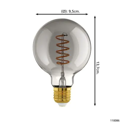 Eglo LED Globe E27 Filament Smokey 4W 100lm - 820 Zeer Warm Wit | Dimbaar - Vervangt 15W